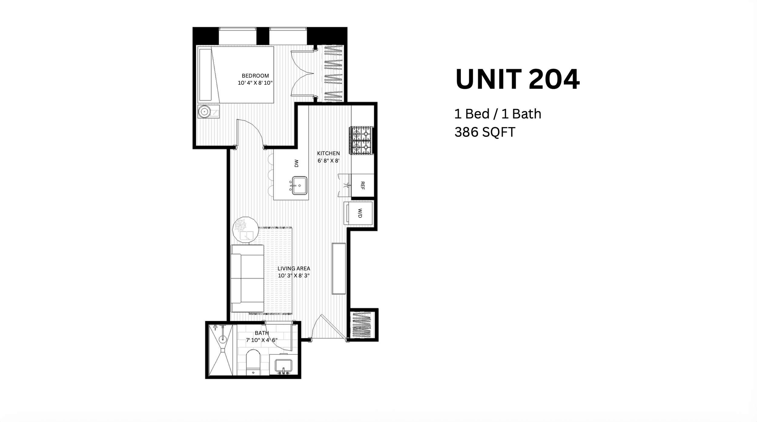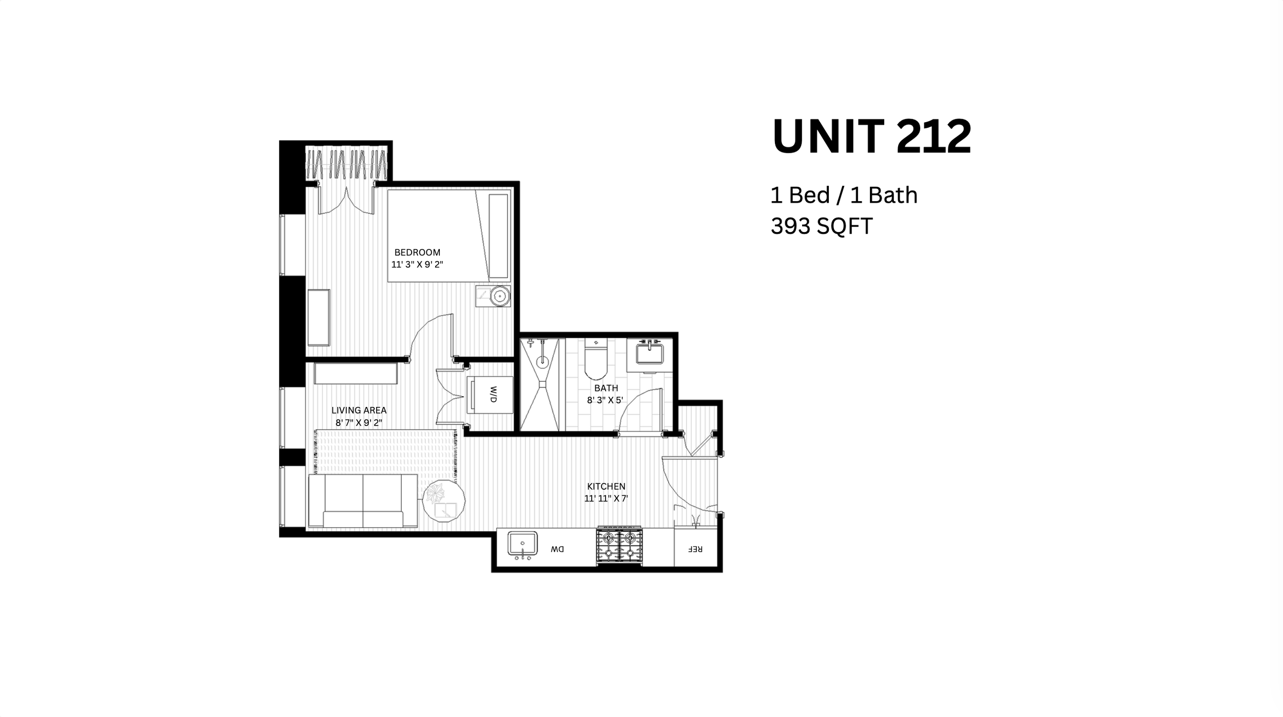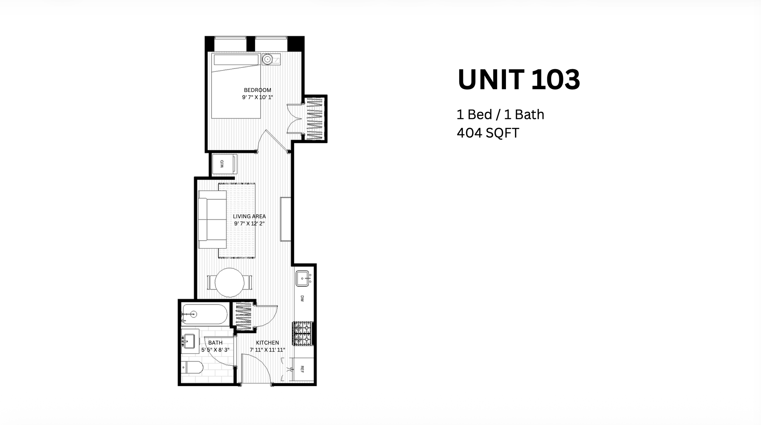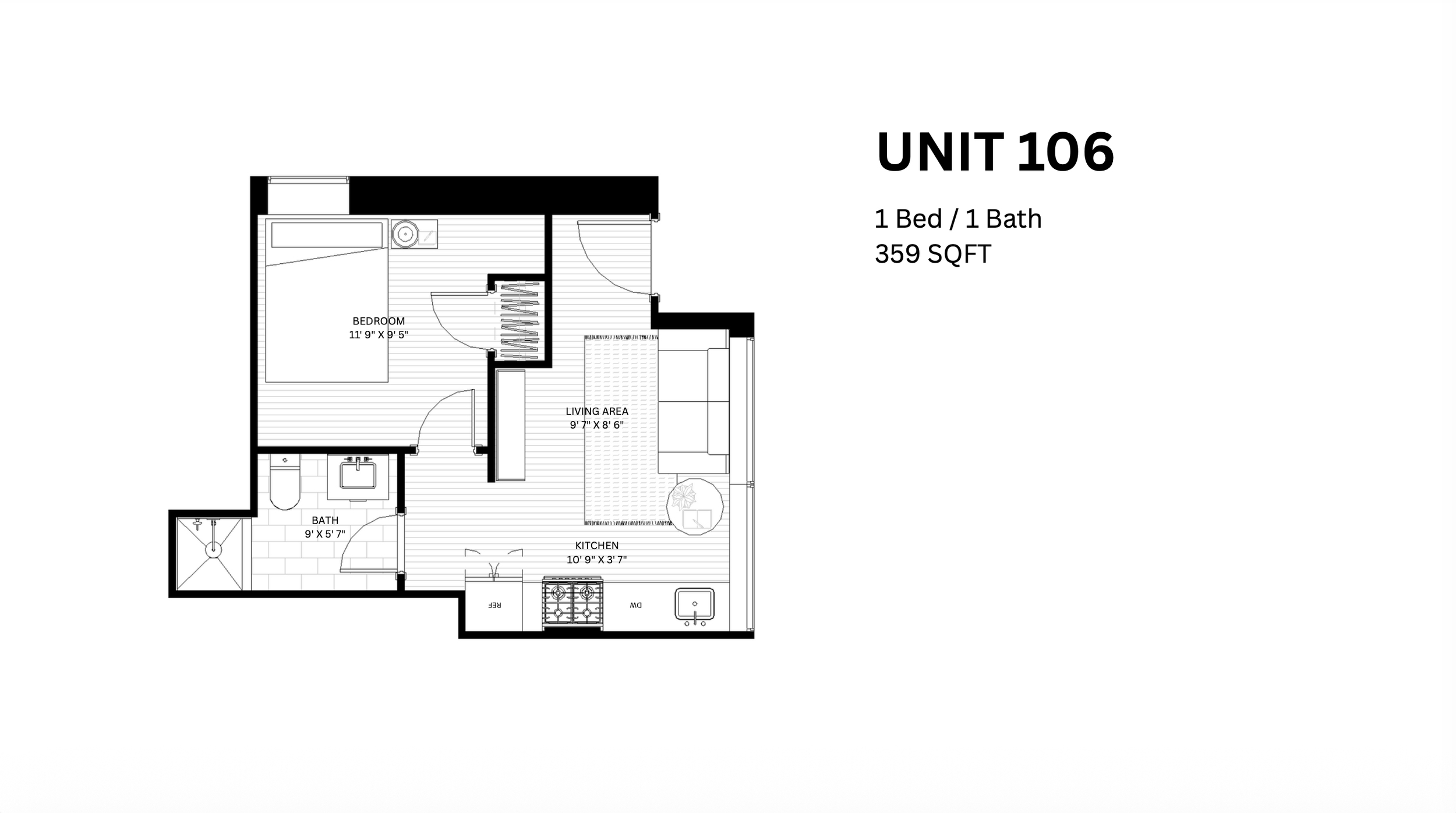1 Bed 1.5 Bath |